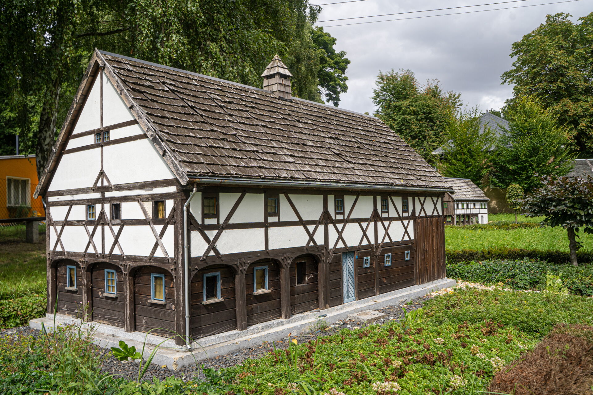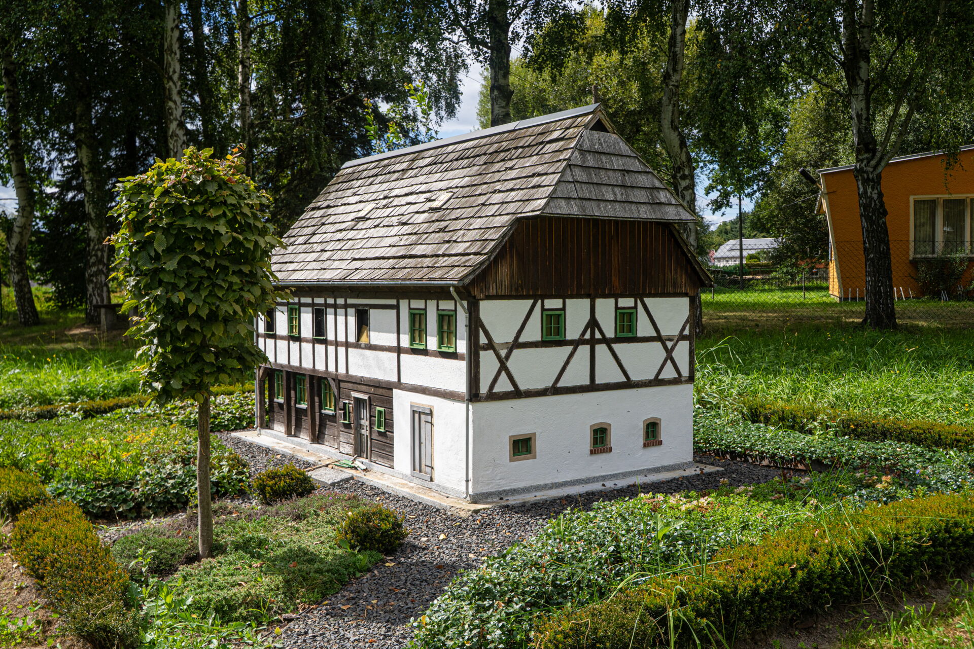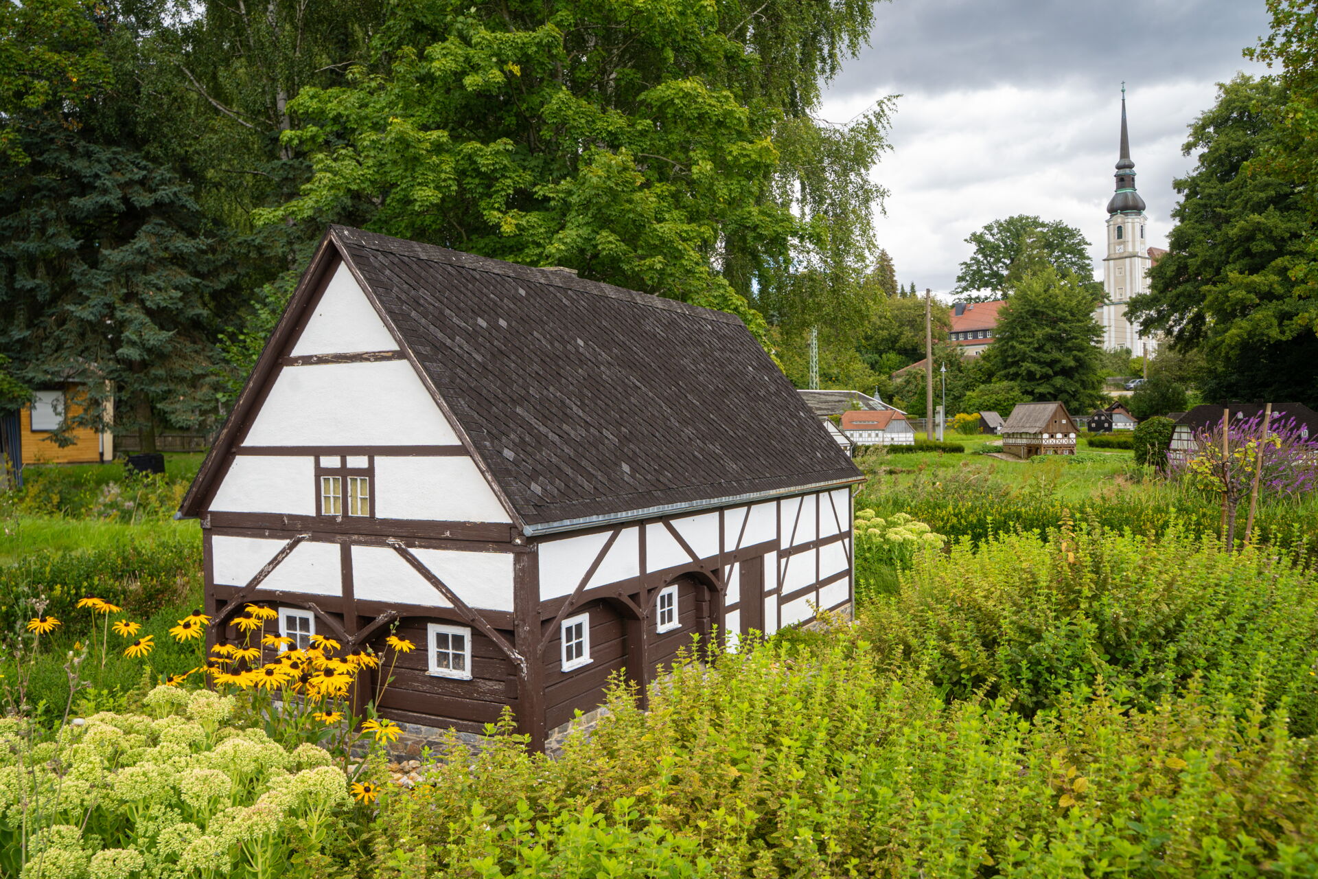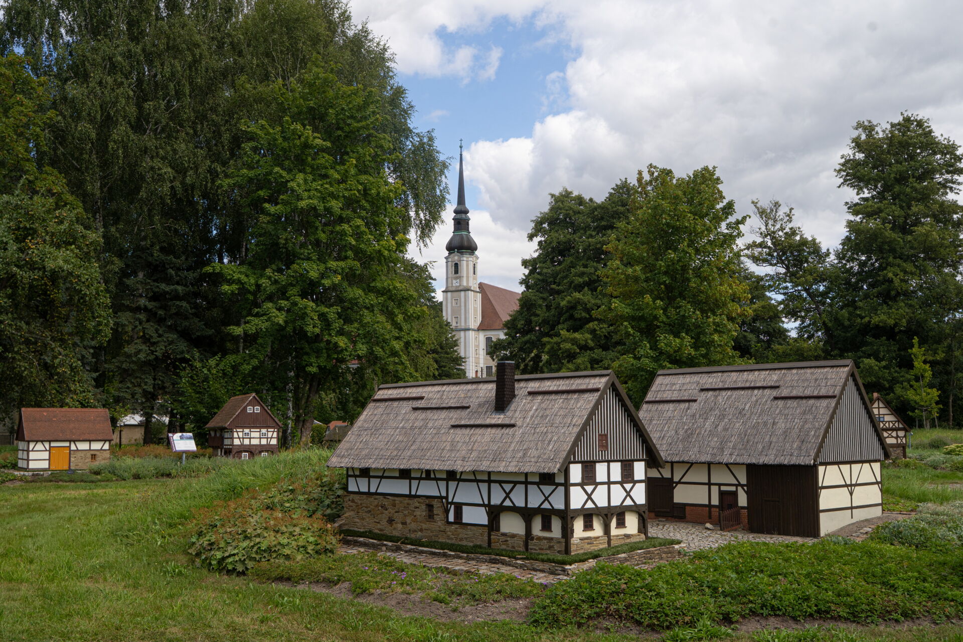 Auf 3870 Quadratmetern Parkfläche zwischen Deutschlands größter Dorfkirche und dem modernen Gemeinde- und Bürgerzentrum stehen unsere 19 Miniatur-Umgebindehäuser im Maßstab 1:5.