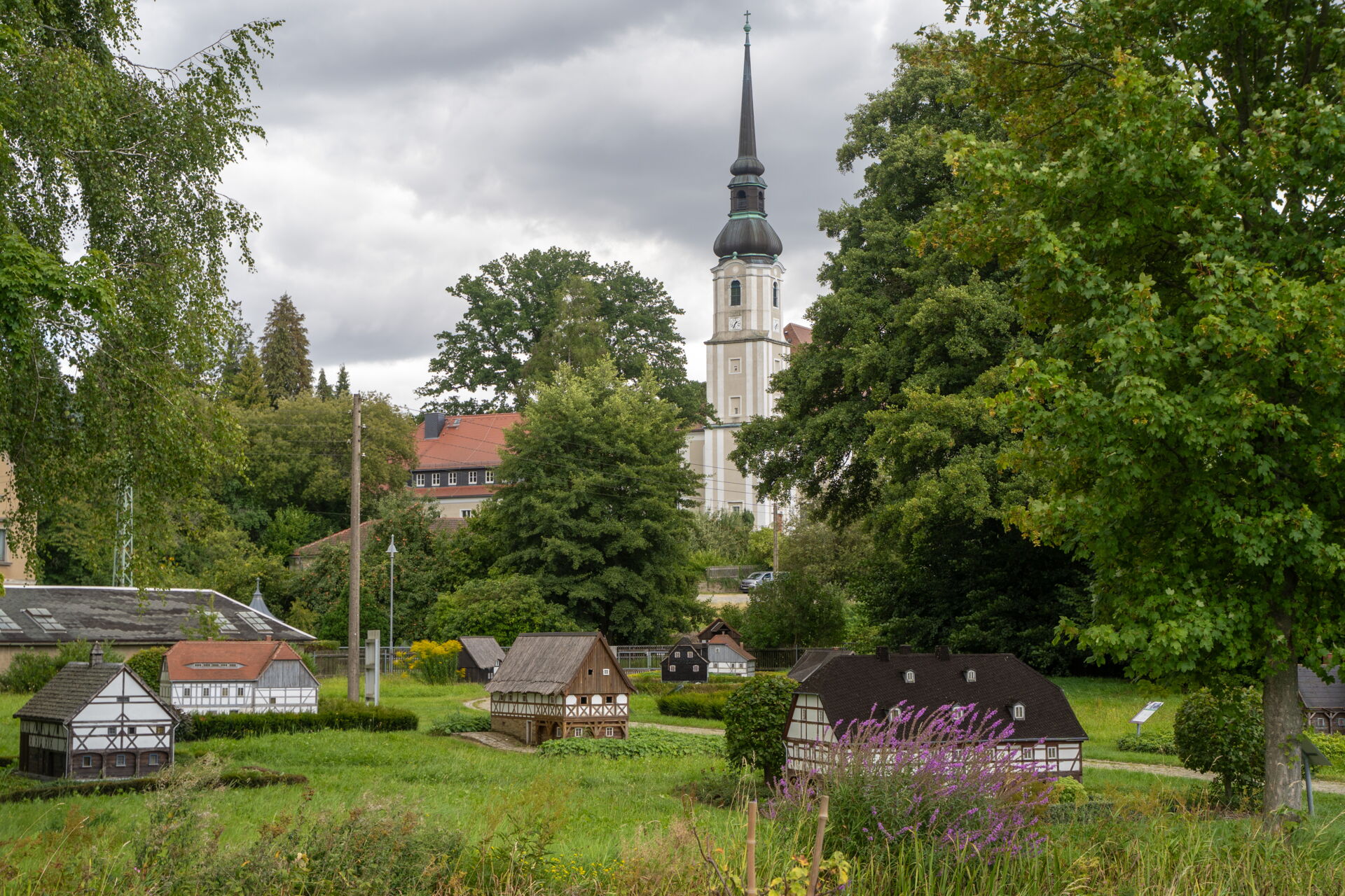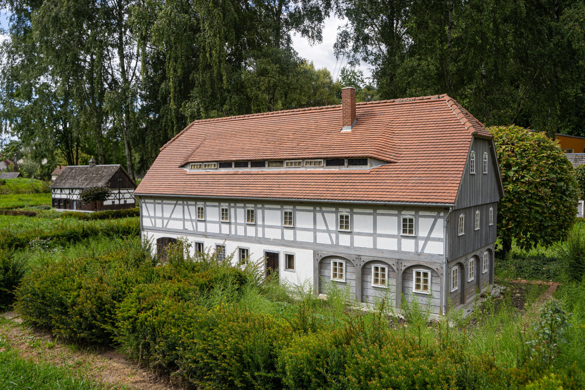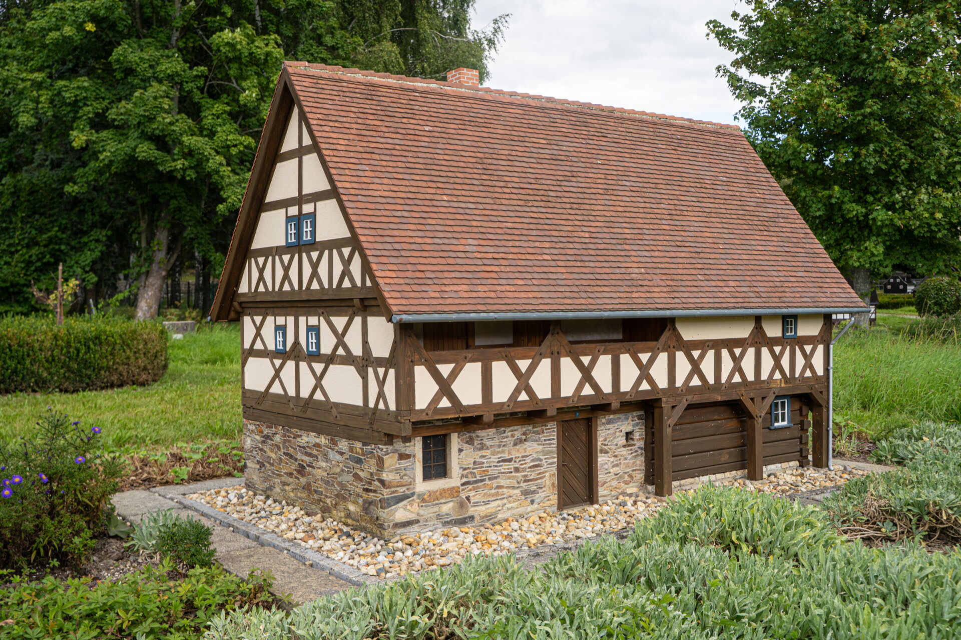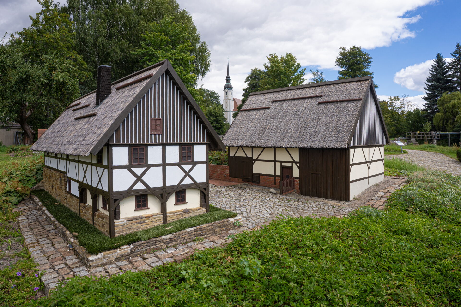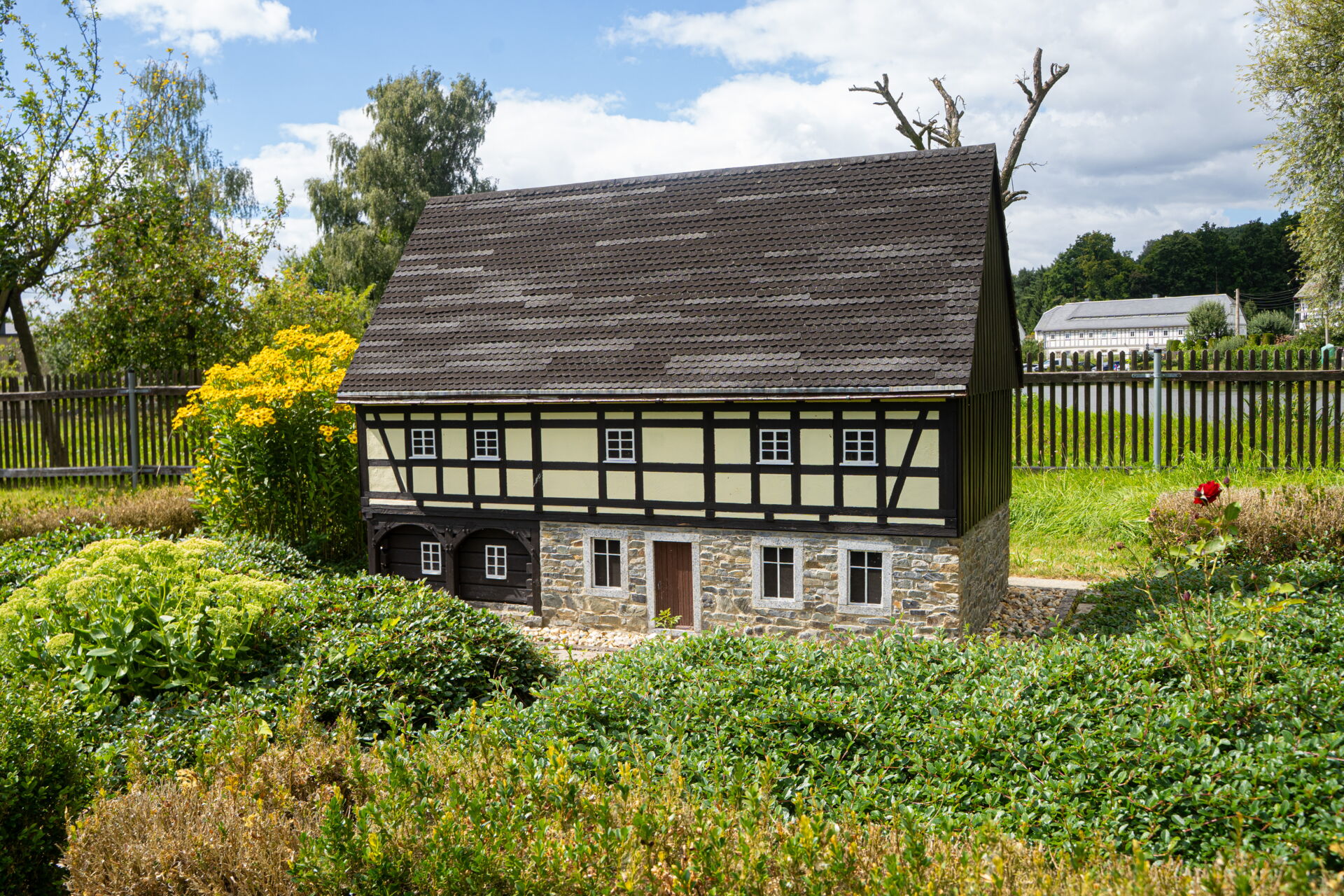 Auf 3870 Quadratmetern Parkfläche zwischen Deutschlands größter Dorfkirche und dem modernen Gemeinde- und Bürgerzentrum stehen unsere 19 Miniatur-Umgebindehäuser im Maßstab 1:5.