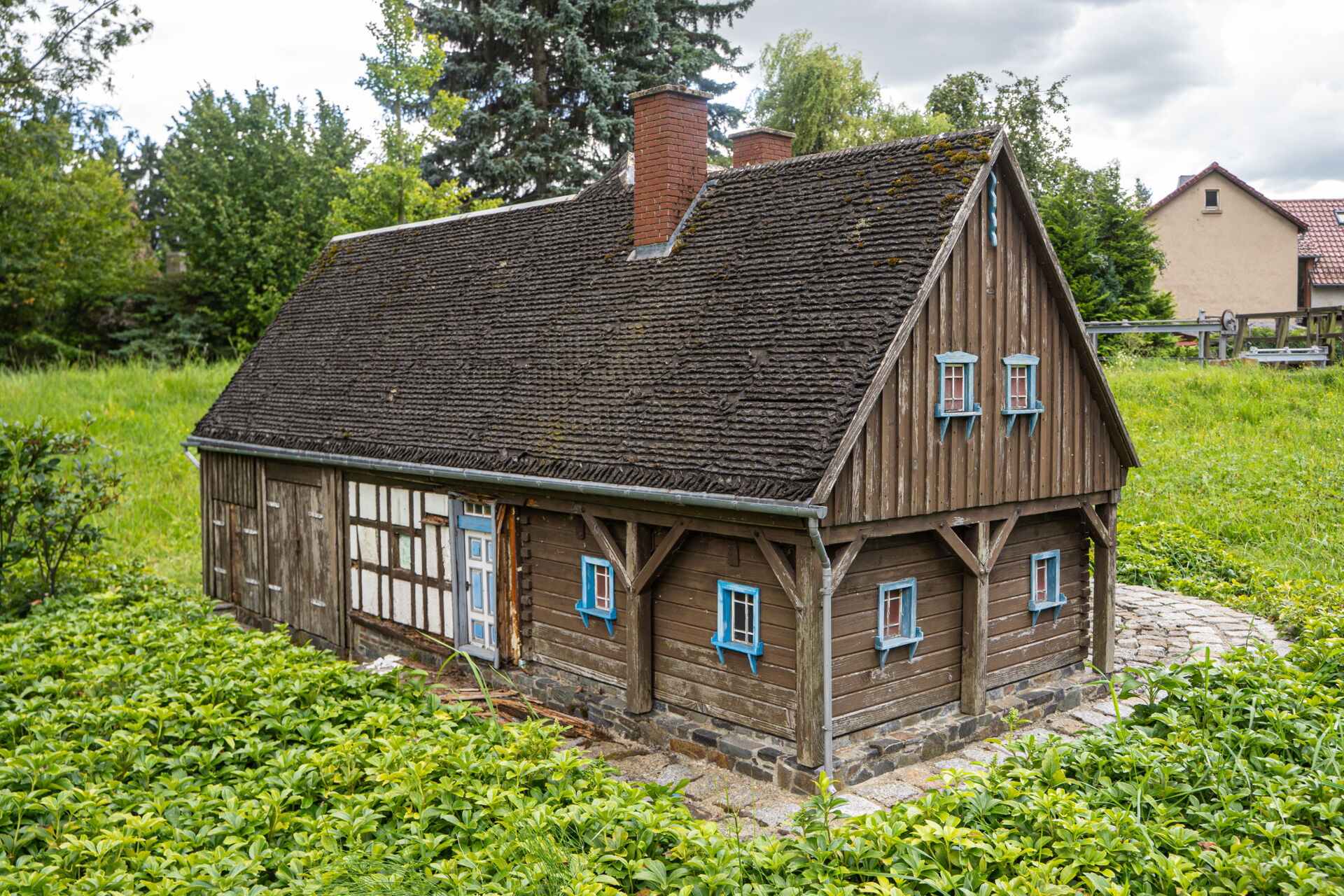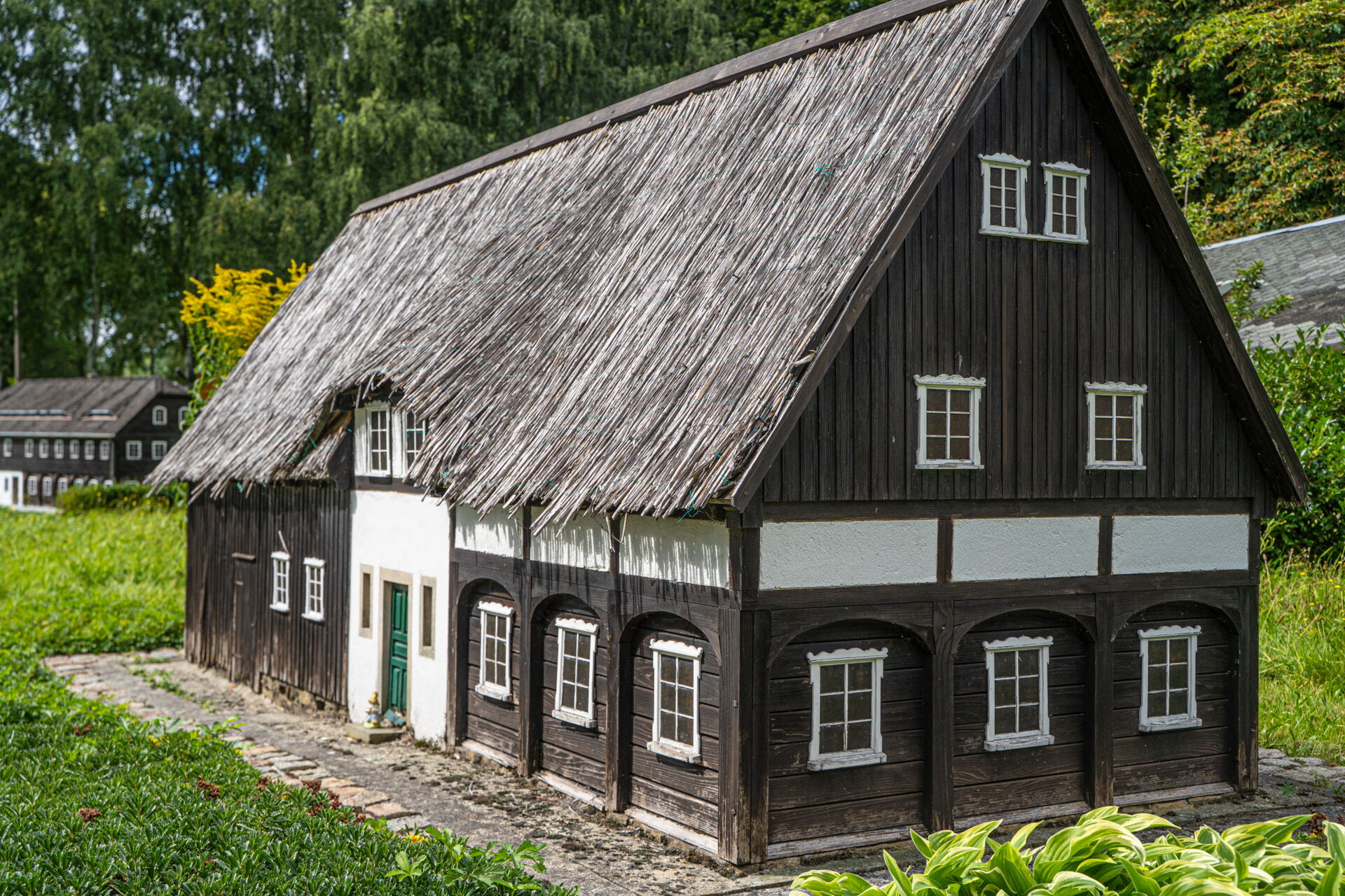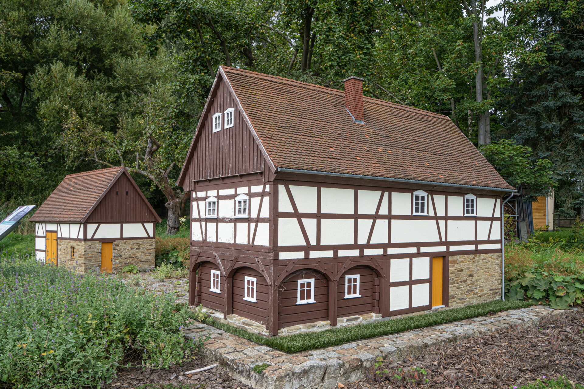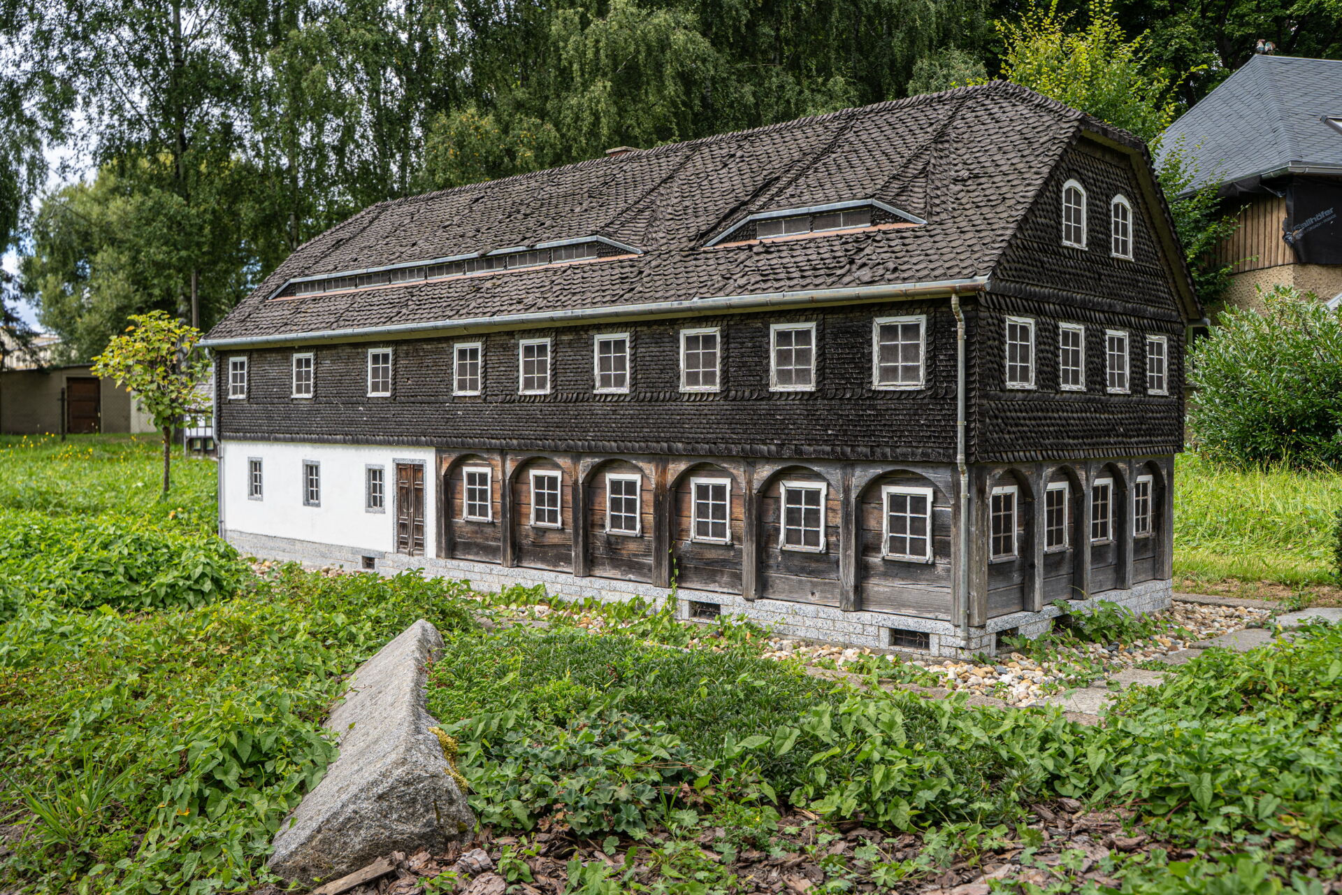 Auf 3870 Quadratmetern Parkfläche zwischen Deutschlands größter Dorfkirche und dem modernen Gemeinde- und Bürgerzentrum stehen unsere 19 Miniatur-Umgebindehäuser im Maßstab 1:5.