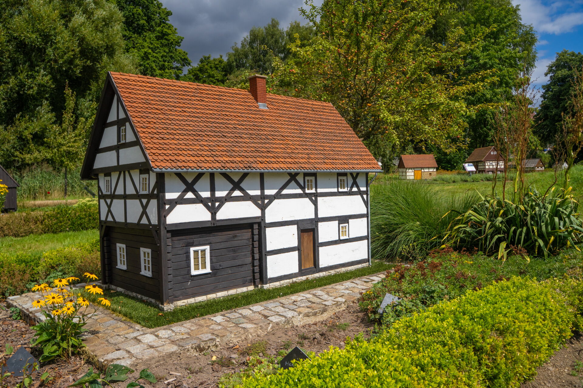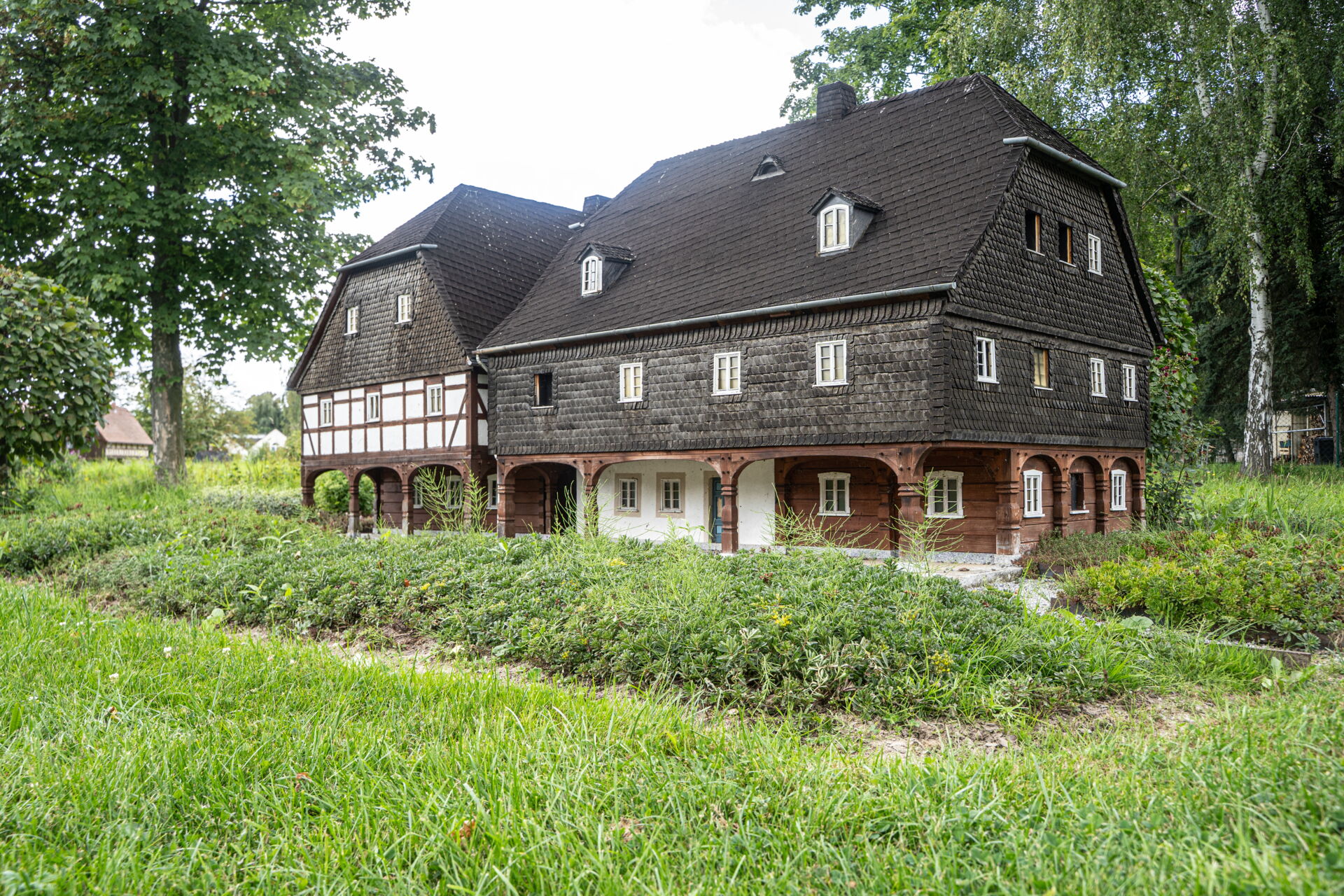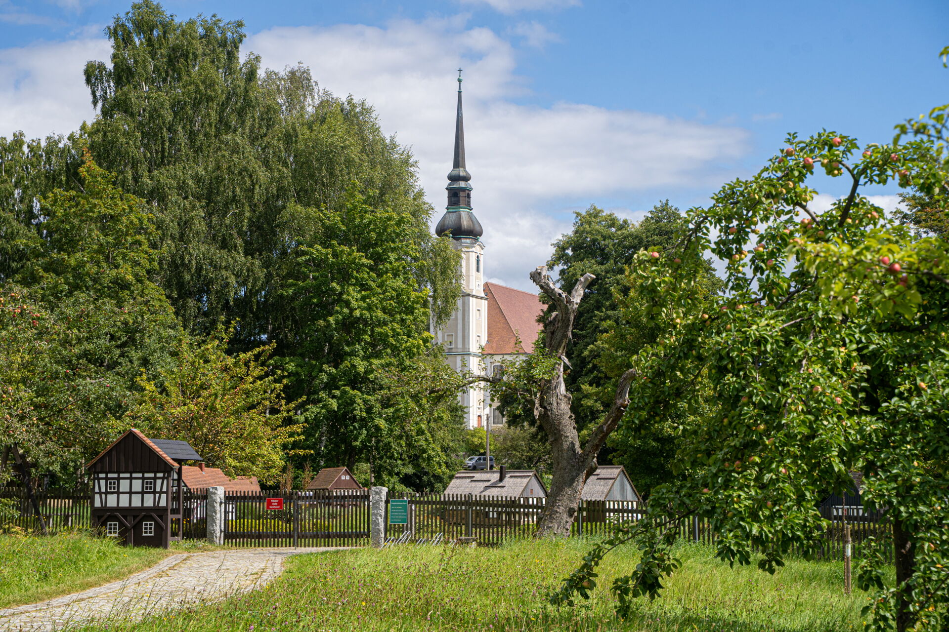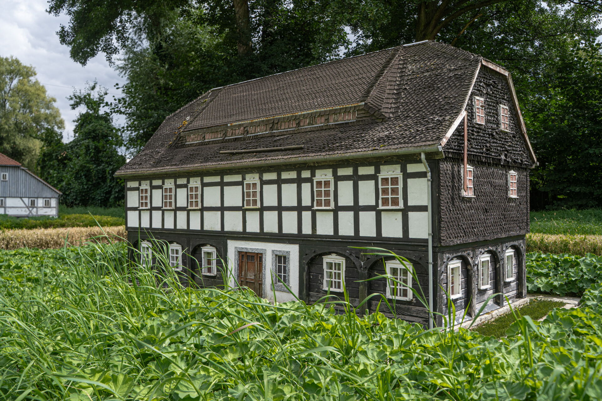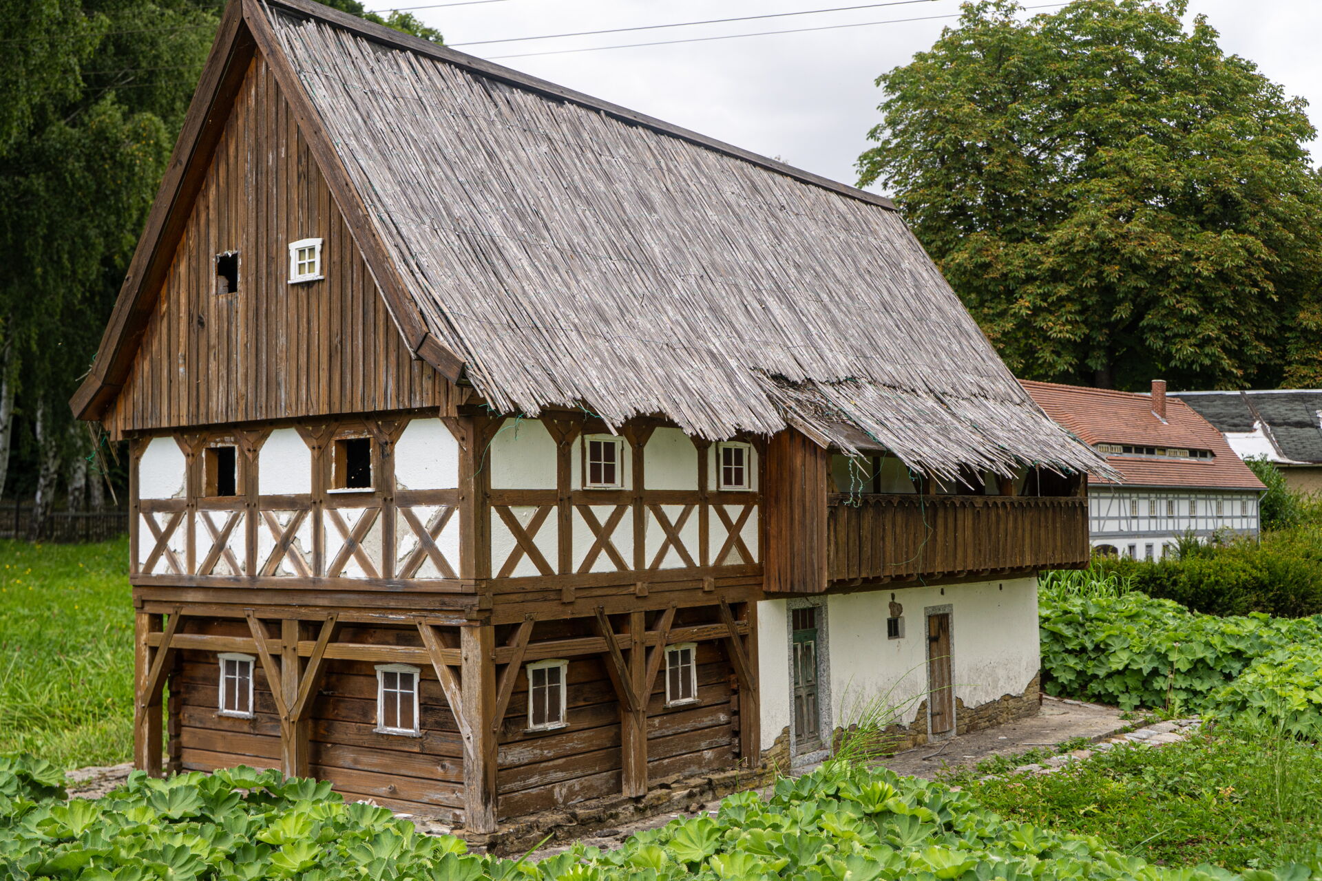 Auf 3870 Quadratmetern Parkfläche zwischen Deutschlands größter Dorfkirche und dem modernen Gemeinde- und Bürgerzentrum stehen unsere 19 Miniatur-Umgebindehäuser im Maßstab 1:5.