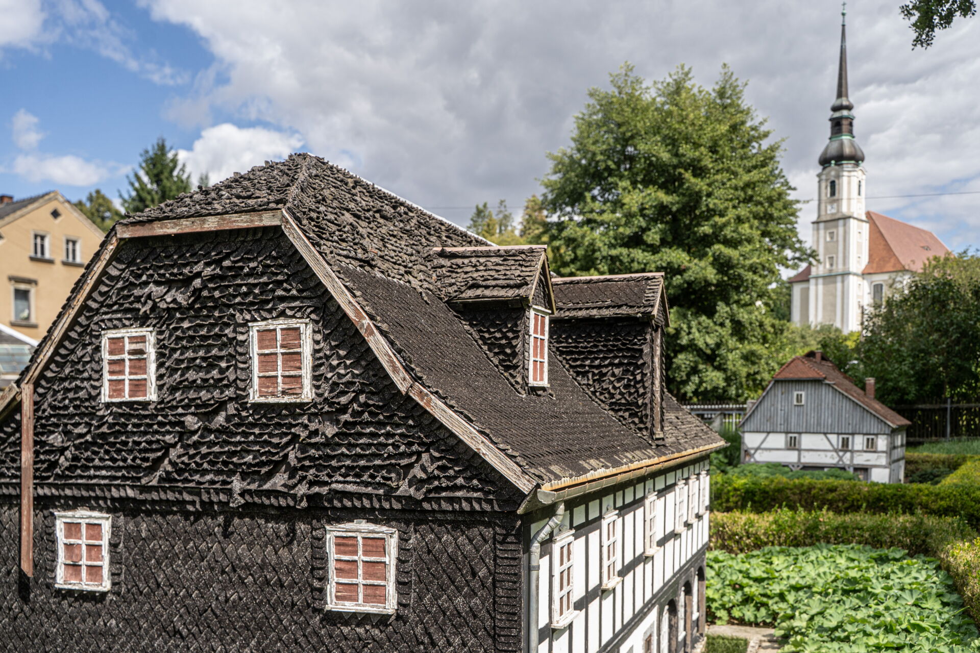 Im Jahr 1870 errichtete die Textilfabrik Große ihre Gebäude auf dem Grundstück, 1877 folgten tiefgreifende Umbauten. Nach dem Erwerb und der Sanierung durch den Sächsischen Verein für Volksbauweise 1993 übernahm im Jahr 2000 der Landesverein Sächsischer Heimatschutz das Haus. Heute beherbergt es eine gemütliche Gaststätte mit einer Ausstellung zur Zimmermannskunst.