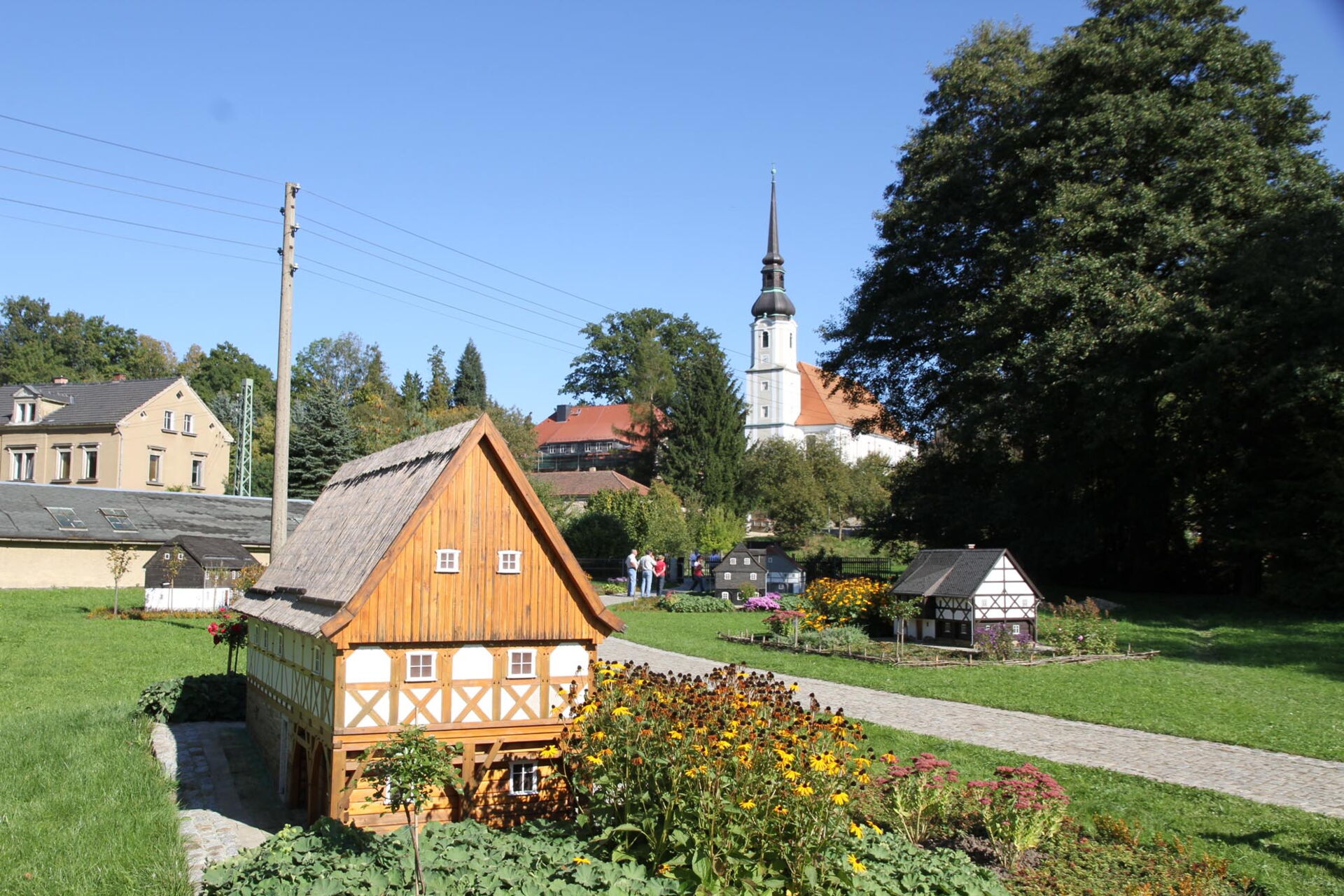 auf dem Spielplatz "Clausnitzer Garten" neben dem Umgebindehaus-Park unterhalb der Kirche